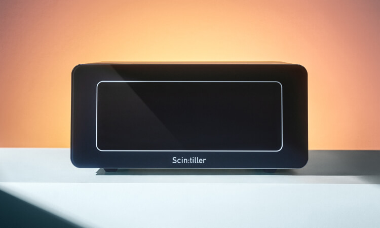 マークはオリジナルのロゴマークとフォントの組み合わせで構成。当技術の機能と特徴を直感的に理解できるようシンプルな光を示す形状で表現されています。また、カラーは当技術最大の特徴であるブルーのライトをイメージ。一見ベタ塗りにも見える控えめなグラデーションは、光が降り注ぐ煌き感と力強さを表現しています。